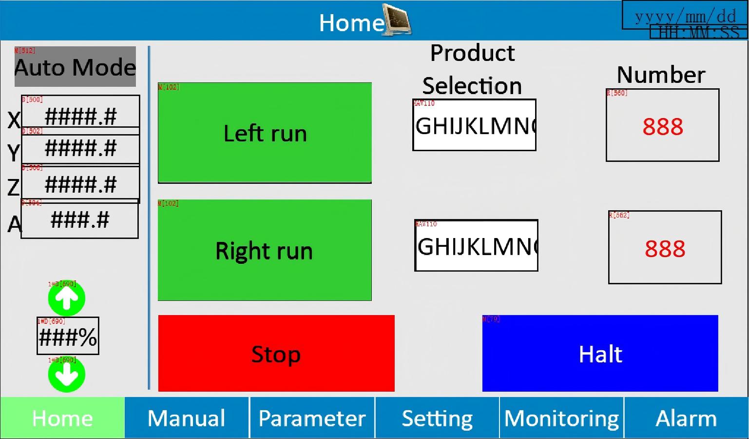 The WECON solution is a column straight-arm palletizing machine developed based on the WECON bus-type PLC LX6S. It controls through the motor shaft to stack and pile up items at the preset positions. The products used in this solution are as follows: